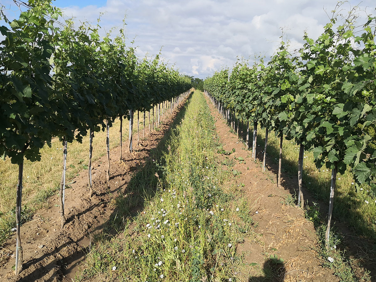 Wir glauben nicht, dass Mittel, die Pflanzen abtöten, einen Platz in unseren Weingärten haben. Beikräuter im Unterstockbereich werden bei uns mechanisch oder in Handarbeit reguliert.
